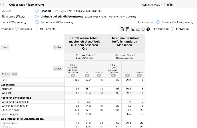 Wir haben ein Kreuztabellierungtool aus dem Bereich der professionelle Markt-/Mediastudien angebunden.