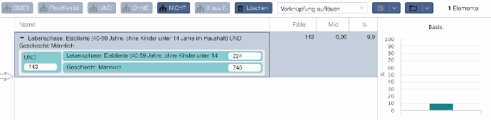 Durch die beliebige Verknüpfung von Antworten der Befragten lassen sich individuelle Zielgruppen erstellen, deren Eigenschaften im Detail untersucht werden können.